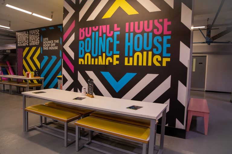 Bounce House is a brand new bounce park that has evolved from the previous company ‘Spring City’. The company offers a new service utilising indoor bouncy castles. Following the rebrand, Bounce House had moved from providing a children only service to offering adult only nights with a bar on site. They therefore wanted the branding to be available for a wider demographic.